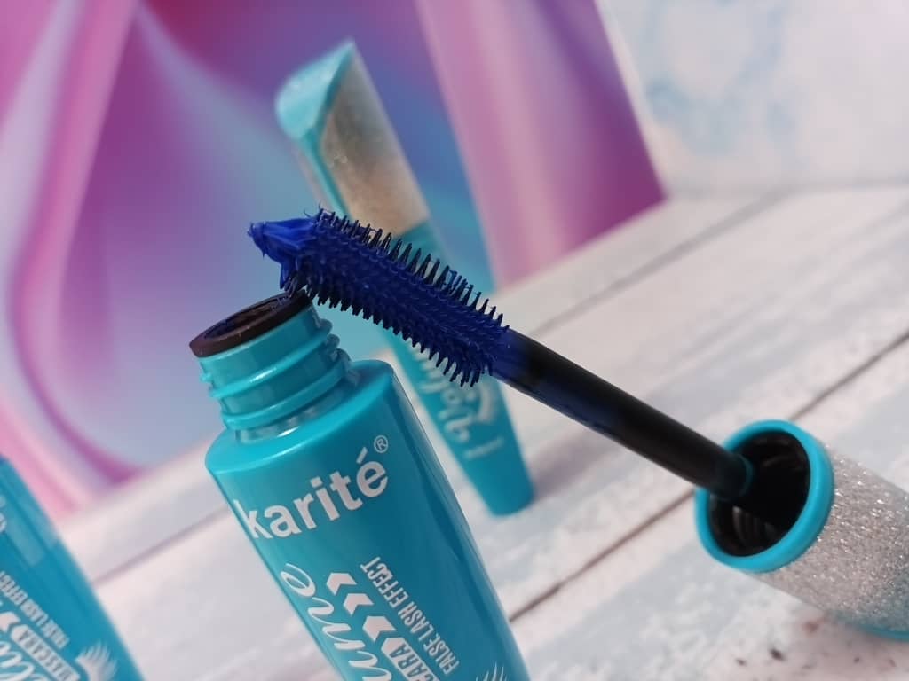 ریمل آبی حجم دهنده کاریته (karite Volume Mascara False Lash Effect) مناسب برای مهمانی و مجالس به چشمها و آرایش شما جذابیت خاصی بخشیده و با خاصیت ضدآب و ماندگاری بالای این ریمل دیگر نگران ازبین رفتن و ریختن ریمل در زیر چشم خود نباشید. برس خاص و بزرگ مویی این ریمل باعث پوشش کامل تارهای مژه شده و از چسبیدگی آنها به هم جلوگیری میکند و بدلیل بافت سبک مواد ریمل هیچگونه سنگینی روی پلک خود احساس نخواهید کرد. این ریمل به راحتی با آرایش پاک کن های چشم پاک می شود. این محصول ضد حساسیت می باشد و برای کسانی که از لنز استفاده می کنند مناسب است. این ریمل کامل کننده ی آرایش صورت است و ظاهری منحصر به فرد می بخشد.